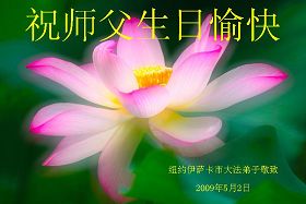 Les pratiquants de Falun Dafa de Isaac, New York souhaitent un bon anniversaire au vénérable Maître !
