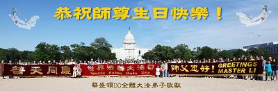 Les pratiquants de Falun Dafa de Washington DC souhaitent un bon anniversaire au Maître