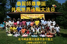 Les pratiquants de Falun Dafa de l’état du Texas souhaitent au Maître vénérable un bon anniversaire et célèbrent le 17e anniversaire de la présentation du Falun Dafa au public et la Journée mondiale du Falun Dafa.