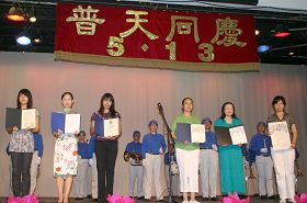 Plus tôt, cette année, le cortège des pratiquants de Falun Gong de Houston a remporté le prix du défilé Martin Luther King 2009 pour le plus beau char et le prix du gagnant international. Une assistante du conseiller Peter Brown a présenté les trophées pour ces prix à l’association du Falun Dafa à cette célébration. Monsieur Stamps, l’organisateur du défilé, a également assisté à la célébration.