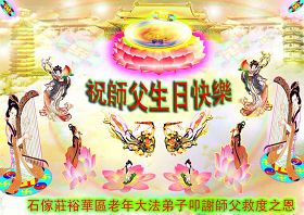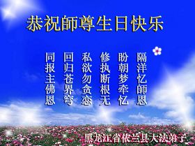 Les pratiquants du groupe d'étude de la Loi, de la ville de Jiamusi, souhaitent respectueusement un joyeux anniversaire au Maître vénéré !