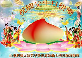 Les pratiquants de Dongming, Shandong, souhaitent un joyeux anniversaire au grand Maître vénéré !