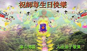 Les pratiquants de la banlieue du Mt. Tai, dans la province du Shandong, souhaitent un joyeux anniversaire au grand Maître vénéré !
