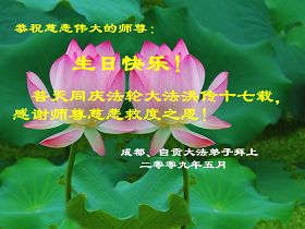 Les pratiquants de Chengdu et Zigong souhaitent respectueusement au Maître bienveillant et grandiose un joyeux anniversaire!