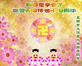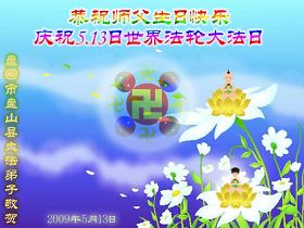 Les pratiquants de Pékin et de Liaoyang souhaitent respectueusement au Maître bienveillant et grandiose un joyeux anniversaire!