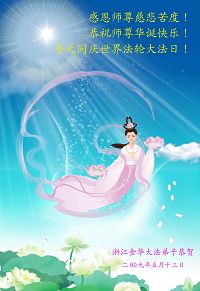 Les pratiquants de Jinhua, province du Zhejiang souhaitent respectueusement au Maître bienveillant et grandiose un joyeux anniversaire!