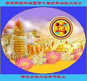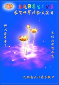 Les pratiquants du canton de Liaoyang, province du Liaoning souhaitent respectueusement au Maître bienveillant et grandiose un joyeux anniversaire!