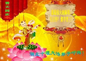Les pratiquants de Shiyan, province du Hubei souhaitent respectueusement au Maître bienveillant et grandiose un joyeux anniversaire!