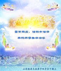 Les pratiquants du canton de Ling, province du Shetong souhaitent respectueusement au Maître bienveillant et grandiose un joyeux anniversaire!