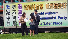 Initié par le Centre d'aide aux démissions du Parti communiste chinois (PCC) du Midwest, une tournée de 14 villes en camion a quitté Chicago le 2 Mai 2009. Après s’être arrêtée, à Milwaukee, Madison, Minneapolis, Des Moines, Kansas City, St. Louis et Springfield, la tournée est arrivée à Indianapolis le 6 mai. Le reste de la tournée comprend Cincinnati, Columbus, Cleveland et Toledo et se termine à Detroit. Au cours des derniers jours, le camion de 8 mètres de long portant les mots "L'effondrement du PCC est inéluctable; Démissionnez du PCC pour votre sécurité", s'est arrêté dans un certain nombre de villes du Midwest. Les volontaires du Centre d'aide aux démissions du PCC ont tenu des rassemblements à chaque étape. Les résidents locaux sont venus manifester leur soutien.