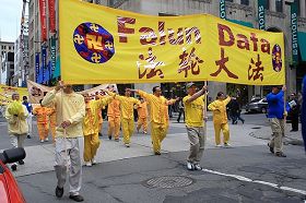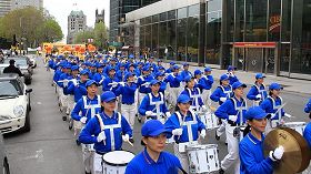 Pour la dixième journée mondiale de Falun Dafa, un grand défilé a été organisé au centre de Montréal et dans son Chinatown. Les pratiquants ont célébré le dix-septième anniversaire depuis la toute première transmission publique de Falun Dafa en Chine et souhaité le 58ème anniversaire du fondateur du Falun Dafa, M. Li Hongzhi.