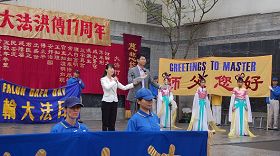 Des pratiquants interprètent plusieurs chansons à l'occasion de la Journée mondiale de Falun Dafa et de l'anniversaire de leur Maître, M. Li Hongzhi . |