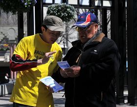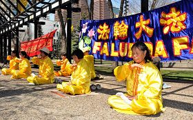 Monsieur Suea Wright vient de Lethbridge, une ville située à deux–cent kilomètres. C’est la première fois qu’il rencontrait le Falun Gong. Il a dit qu’il connaissait le Taichi, les arts martiaux et d’autres qigong, mais qu’il n’avait jamais ressenti une telle paix et une telle sérénité comme avec le Falun Gong. Il a demandé où il pouvait acheter le livre et un pratiquant lui a dit qu’il pouvait le télécharger gratuitement sur internet. Monsieur Wright est resté pendant les deux heures et plus de l’événement.