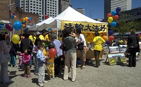 Le 10 mai, les pratiquants du Falun Gong à Boston ont organisé une série d'activités dans le quartier chinois pour célébrer le 10e Jour mondial du Falun Dafa et le 58e anniversaire du Maître Li Hongzhi.