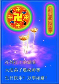 Les pratiquants de la province du Hunan souhaitent au Maître vénéré un bon anniversaire!