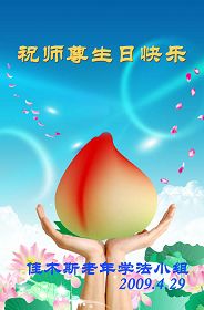 Les pratiquants de Longnan, Daqing, souhaitent au Maître vénéré un bon anniversaire!