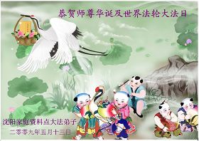 Un groupe d'étude de la Loi à Shenyang souhaite au Maître vénéré un bon anniversaire et célèbre le 17e anniversaire de la transmission du Falun Dafa au public!