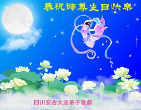 Les pratiquants de Luzhou, Longchang, Weiyuan, Anyue et Chengdu, province du Sichuan, souhaitent au Maître vénéré un bon anniversaire!