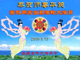 Les pratiquants de Jilin souhaitent au Maître vénéré un bon anniversaire et célèbrent le 17e anniversaire de la transmission du Falun Dafa au public!