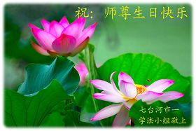 Les pratiquants du champ de pétrole de Liaohe, Panjin, souhaitent au Maître vénéré un bon anniversaire!
