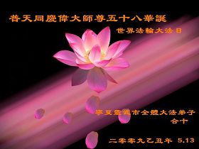 Les pratiquants de Lingwu et Ningwenwuzhong souhaitent au Maître vénéré un bon anniversaire et célèbrent la Journée mondiale du Falun Dafa!