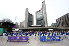 La célébration du Falun Dafa Place Nathan Phillips devant l’hôtel de ville de Toronto : une pratique en groupe