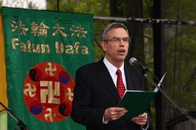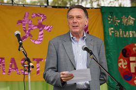 Peter Kent, Ministre d’état aux Affaires étrangères pour les Amériques, a participé au rassemblement. Dans son discours de félicitations, monsieur Kent reconnaît que les valeurs du Falun Dafa de « Vérité – Compassion – Tolérance » ont apporté une santé mentale et physique à d’innombrables personnes. Il a rappelé au public que des millions de pratiquants de Falun Gong sont encore persécutés pour leur croyance et il a souligné que le gouvernement actuel continuera de demander au régime chinois de respecter la liberté de croyance.