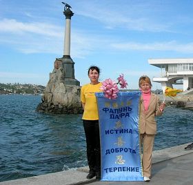 Les pratiquants à Sébastopol souhaitent un Joyeux anniversaire au Maître et célèbrent la 10ème Journée mondiale de Falun Dafa. |