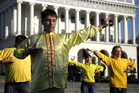 Le 13 mai 2009 les pratiquants d'Ukraine ont tenu des activités sur la place au centre de Kiev afin de célébrer la 10ème journée mondiale de Falun Dafa et exprimer leur gratitude à leur Maître.