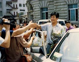Des pratiquants de Falun Gong accueillent le Maître sur les quais de Dalian le 1er juillet 1994 |