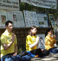 A 10 heures du matin, les pratiquants de la ville de Rome se sont assis en face de l’ambassade de Chine pour protester contre les crimes commis au cours de ces dix dernières années de persécution des pratiquants du Falun Gong. Respectivement, en Italien et en Chinois, les pratiquants de Rome ont lu un communiqué de presse relatif au dixième anniversaire de l’appel pacifique du "25 avril" et ont solennellement averti le PCC qu’il ne pourra pas échapper à sa culpabilité. Ils ont vivement conseillé aux gens de se retirer des organisations du Parti communiste Chinois.