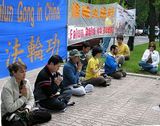 Certains ont fait des démonstrations de la série de cinq exercices, tandis que d'autres distribuaient des imprimés de clarification des faits aux passants. Ils ont aussi rendu hommage à leurs compagnons qui ont perdu leurs vies dans la brutale persécution du PCC.