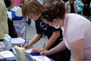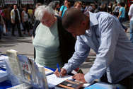 Un jeune homme signe son nom en soutien aux efforts pour mettre fin à la persécution |