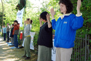 Les pratiquants de Falun Gong manifestent pacifiquement devant l'Ambassade de Chine |
