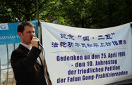 "C'est aujourd'hui le dixième anniversaire de l'appel du 25 avril 1999 à Pékin. Nous voulons vous dire que durant les dix dernières années, la persécution du Falun Gong par le PCC n'a jamais cessé et les tactiques utilisées deviennent encore plus terribles Ceci continue à se produire en Chine aujourd'hui."