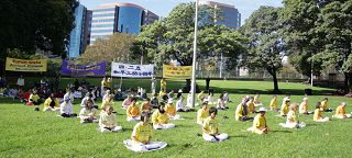 Le matin du 25 avril 2009, les pratiquants du Falun Gong de Sydney se sont rassemblés au Parc Belmore pour faire les exercices et pour commémorer le dixième anniversaire de l’appel du « 25 avril ». La séance de pratique a été suivie d’une conférence de presse demandant la fin de la persécution du Falun Gong par le Parti communiste chinois (PCC).