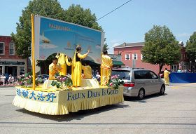 Des pratiquants de Falun Gong du Connecticut ont participé au défilé du Memorial Day à Colchester, Connecticut, le 24 mai 2009. Ils ont présenté le Falun Dafa et diffusé le message de Vérité, Compassion et Tolérance aux résidents locaux. La présentation des beaux exercices par les pratiquants de Falun Gong et l’élégant char ont gagné les applaudissements des spectateurs le long du défilé.