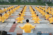 Photos historiques de Chine : Un groupe de pratique du Falun Gong Place du Palais d'été à Shenyang en 1998