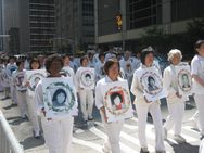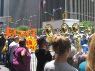 Des pratiquants du monde entier s'étaient rassemblés à New York. Un défilé de milliers de pratiquants allait commencer à Manhattan, sous le thème "Appel à la justice et Stop à la persécution?" Conduits par la Fanfare Tian Guo (Terre Divine) les quatre sections du défilé créaient une scène majestueuse sur Madison Ave. Les différentes sections avaient respectivement pour thèmes "La vaste propagation du Falun Dafa", "Endurer la souffrance en Chine", "Désintégrer le PCC et mettre fin à la persécution", et "Falun Dafa est grand."