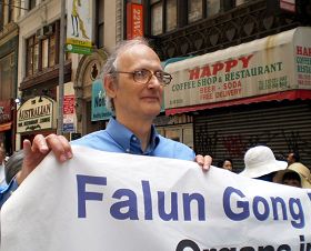 Quentin Bellow est un pratiquant de Falun Gong résidant à New York. Il a dit au journaliste que la pratique a contribué à améliorer remarquablement sa santé. Quentin a dit : « Pratiquer le Falun Gong m’a donné plus de confort dans ma vie », et que Vérité – Compassion – Tolérance sont des grands principes de cultivation que chacun devrait connaître. « Aujourd’hui, je suis venu me joindre au défilé dans l’espoir que plus de personnes puissent comprendre la persécution qui se passe en Chine. Cette calamité existe depuis dix ans, et elle doit s’arrêter! »