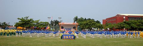 Lors de la cérémonie d'ouverture du matin, la Troupe de percussion du Falun Gong a commencé à jouer sur les "Tambours de guerre;" Ils ont été suivis par les pratiquants de la Fanfare céleste (Tian Guo) et le groupe de danse des Fées célestes, puis une démonstration des exercices de Falun Gong par près de 300 pratiquants. Pendant la démonstration, plusieurs personnes dans le public ont imité les mouvements.