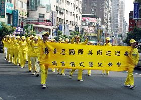 Les pratiquants du Falun Gong de Taiwan ont organisé un défilé dans l’après-midi du 7 juin 2009, dans la ville de Chunghe, canton de Taipei. Ils ont voulu informer la population locale que l’exposition artistique de Vérité – Compassion – Tolérance se tiendra dans leur région.