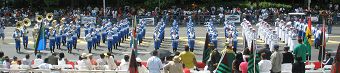 Après le défilé, la fanfare a joué « Falun Dafa est bon » devant l’hôtel de ville. La fanfare de la Terre divine était le plus grand groupe dans le défilé.