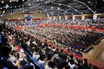 Le 7 juin 2009, plus de 5 000 pratiquants de Falun Dafa en provenance des cinq continents et de plus de 40 pays se sont réunis au Centre du comté de Westchester à New York pour organiser solennellement une Conférence annuelle de partage d’expériences de cultivation du Falun Dafa. Aux environs de 14h00, Maître Li est venu à la conférence pour enseigner la Loi et répondre aux questions des pratiquants pendant deux heures et demi.
