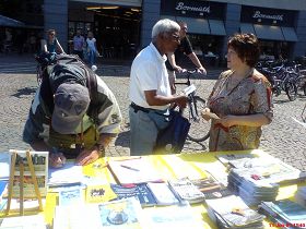 Un couple chinois, qui vit en Allemagne depuis de nombreuses années, a discuté avec les pratiquants pendant très longtemps. Ils ont exprimé leur respect aux pratiquants et ont dit avoir déjà démissionné du Parti. Ils étaient très inquiets de la corruption de la moralité en Chine. Avant de partir, ils ont souhaité bonne chance aux pratiquants et ont dit espérer que le Falun Gong aidera à améliorer le standard moral en Chine.