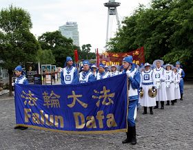 Le samedi 16 mai, les pratiquants de Falun Gong ont organisé un défilé à Bratislava, capitale de la Slovaquie, afin d'attirer l'attention sur les violations des droits de l'homme par le Parti communiste chinois. La fanfare Tian Guo menait le défilé, qui est parti de la place Rybne au centre ville, a traversé la vieille ville pour arriver finalement à l'Ambassade de Chine, une marche d'à peu près deux heures.