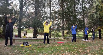 Les pratiquants ont pratiqué les exercices du Falun Gong en face du consulat pour manifester contre la persécution. |