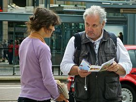 Après qu'un touriste des Etats-Unis ait vu les caractères sur les banderoles en chinois, il s'est exprimé dans un chinois courant et dit aux pratiquants qu'il avait vécu trois ans à Taiwan et y avait appris la persécution du Falun Gong en Chine continentale. Il a dit aussi qu'il savait qu'il y avait plusieurs centaines de milliers de personnes pratiquant Falun Gong à Taiwan mais qu'il ne s'attendait pas à voir le Falun Gong lors de son voyage en Allemagne, et que cela lui faisait vraiment plaisir.