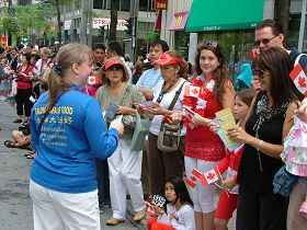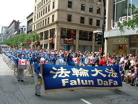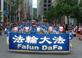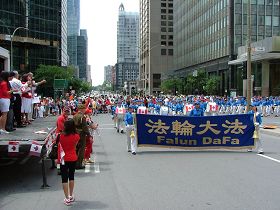 Le 1er juillet 2009, a eu lieu la 142ème célébration de la Journée du Canada. La Fanfare Tian Guo (pays céleste) du Falun Dafa avait été invitée à participer au défilé de la Journée du Canada de Montréal. Plus de mille personnes se sont déplacées pour regarder le défilé. La belle musique et les jolis costumes de la Fanfare Tian Guo ont reçu les éloges des spectateurs.