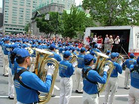 La Fanfare Tian Guo du Falun Dafa défile dans la rue Ste Catherine de Montréal |